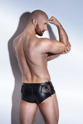 Noir Handmade Mens Power Wetlook Shorts With Tulle And Eco Leather LacingUnleash Bold Style with Noir Handmade's Power Wetlook Shorts Make an unforgettable statement in these expertly crafted Power Wetlook Shorts from Noir Handmade. These innovative shorts combine three premium materials - sleek wetlook fabric, revealing tulle panels, and sophisticated eco leather accents - to...