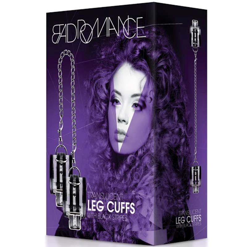 Enhance your bondage play with the Bad Romance Translucent Leg Cuffs featuring a stylish blend of PVC, leather, and metal. Perfect for adding a fashionable touch to your BDSM sessions.