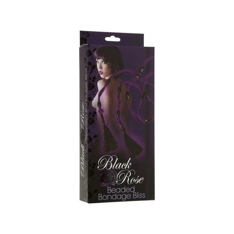 Discover the Doc Johnson Black Rose Multi Position Beaded Ropeβa luxurious 37-inch restraint crafted from soft cotton in a striking purple hue. Featuring adjustable black beads and elegant tassels, this versatile rope ensures comfort, security, and endless creative possibilities for bondage play.