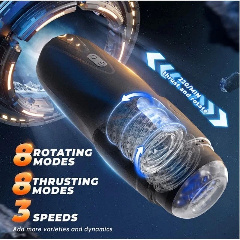 The Galaxy Voy stroker combines 8 thrust and rotation modes, LED light feedback, and a heated drying base. With lifelike CyberSkin texture and one-touch climax control, it delivers a cosmic self-pleasure experience every time.