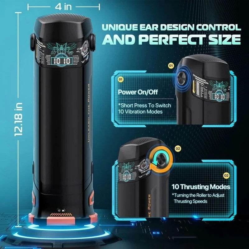 This high-tech stroker blends luxury and power with 10 vibration modes, 10 thrusting modes, and 15 speeds for an ultra-custom experience. Crafted from realistic CyberSkin and medical-grade silicone, it includes an LCD screen, heating function, and internal drying base. It's a complete package for advanced pleasure, available at Adultsmart and Adult Lifestyle Centres Kogarah.