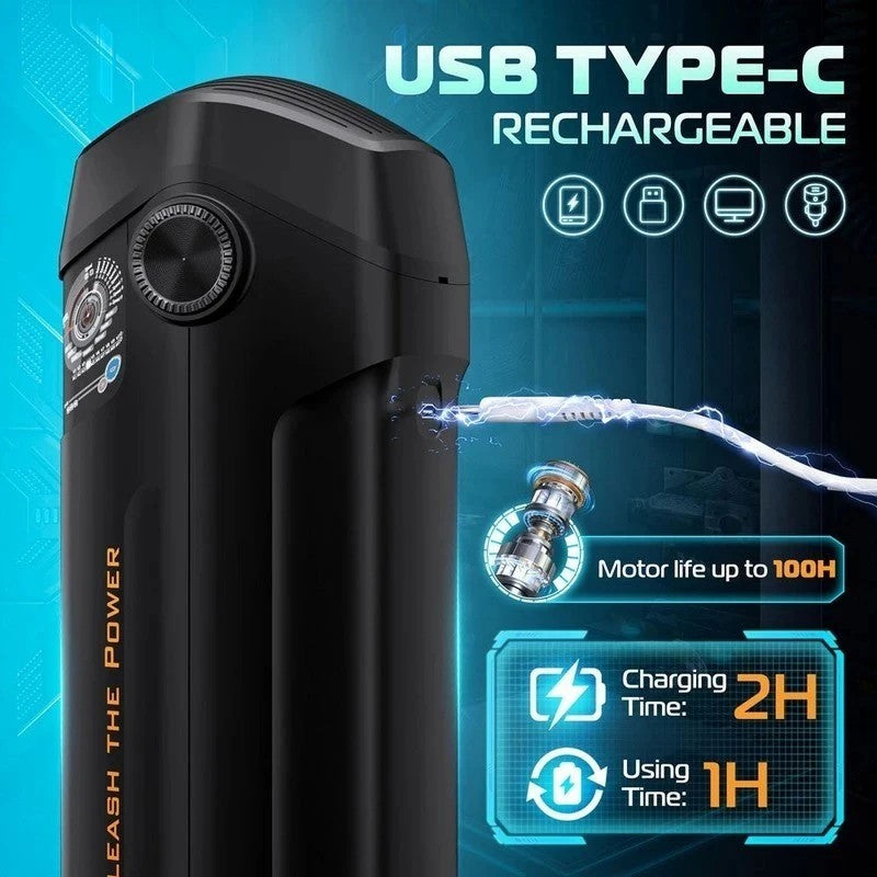 Disassemble after use and clean the sleeve with warm water and toy-safe cleaner. Dry it using the built-in internal drying function for convenience. Use the included cleaning wand for deep cleaning, and store the device in a cool, dust-free place. Maintain CyberSkin texture with renewer powder if desired.