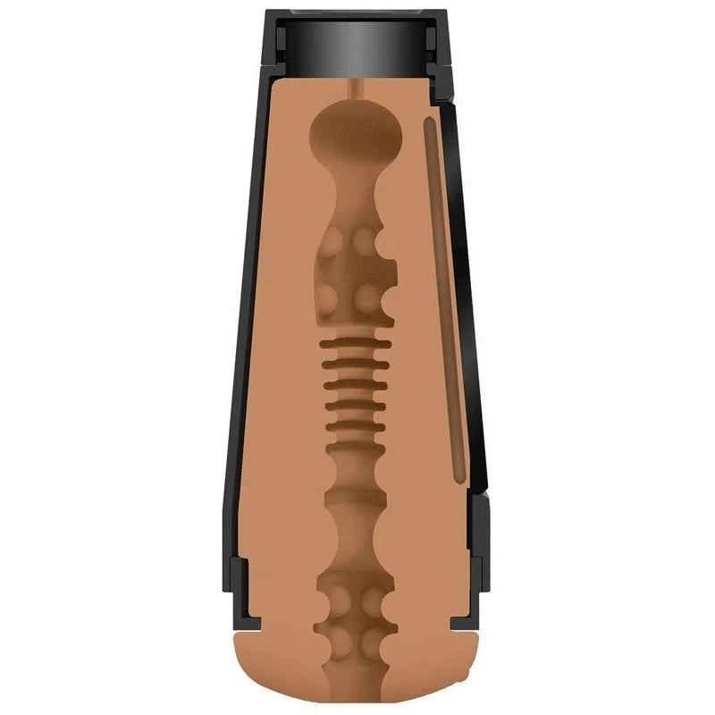 The Main Squeeze stroker features a textured Ultraskyn tunnel that mimics the sensations of real penetration, along with an adjustable squeeze plate for customizable tightness.