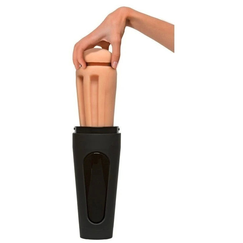 This stroker features a discreet case with a screw-on top for storage and travel, making it a convenient and portable option for pleasure on the go.
