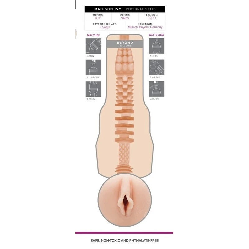 Experience Madison Ivy’s signature textures with this customizable Fleshlight for intense solo pleasure.