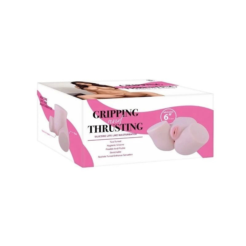 Enjoy an ultra-realistic solo experience with the Gripping & Thrusting 6-Inch Life-Like Silicone Pussy and Ass Masturbator. Featuring two textured love tunnels and a supple silicone feel, it offers deep stimulation and a snug, stretchable fit for ultimate pleasure.