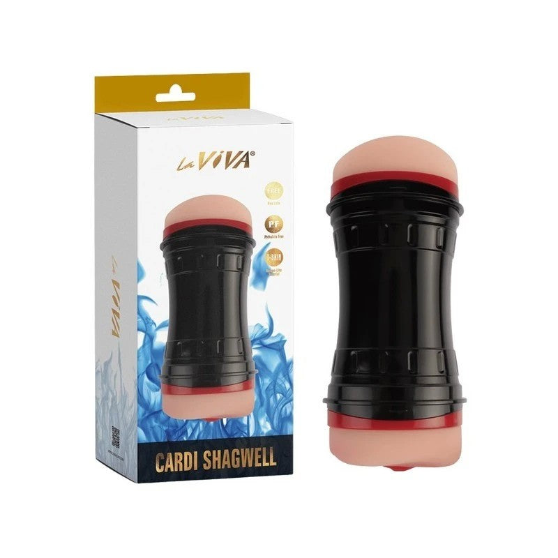 The La Viva Cardi Shagwell Masturbator is compact and portable, making it easy to store and travel with for on-the-go pleasure.