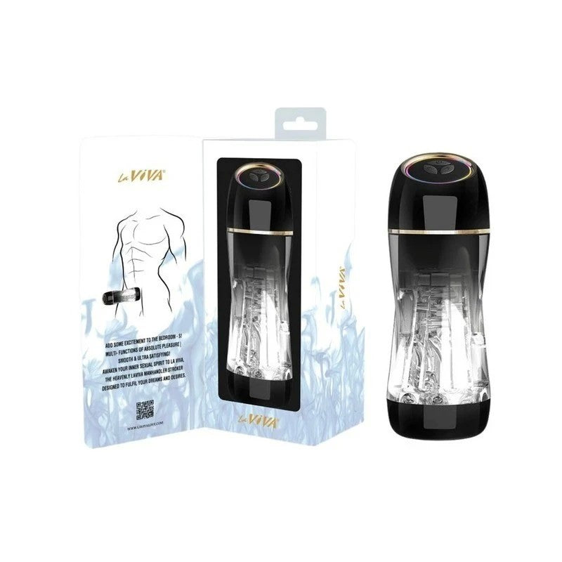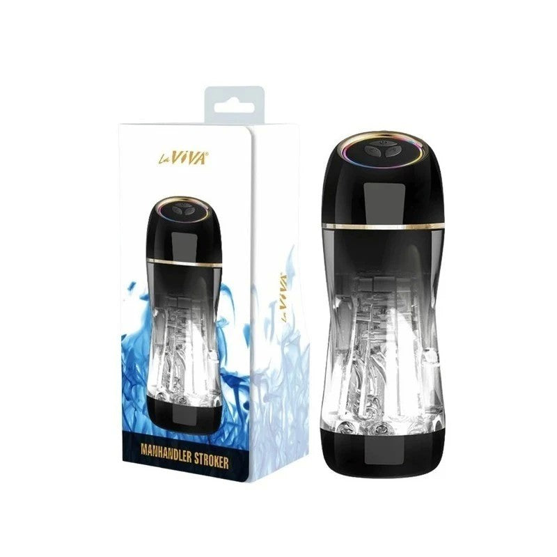 The La Viva Manhandler Male Stroker revolutionizes pleasure with back-and-forth motion, centrifugal rotation, and 10 vibration and suction modes. Featuring a soft-touch silicone tunnel, USB rechargeability, and a powerful Burst Mode, it delivers intense stimulation like never before.