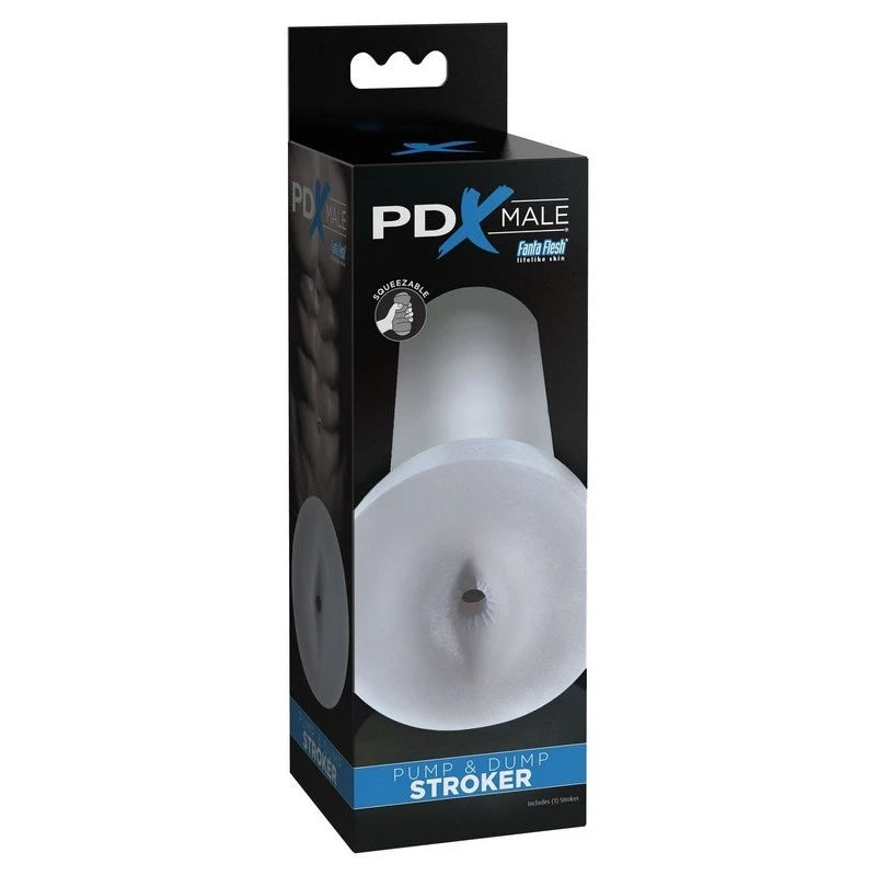The PDX Male Pump & Dump Stroker features a lifelike anal design and ultra-soft textured sleeve for realistic pleasure. Its compact, travel-sized build makes it a discreet and satisfying stroker for on-the-go solo sessions.