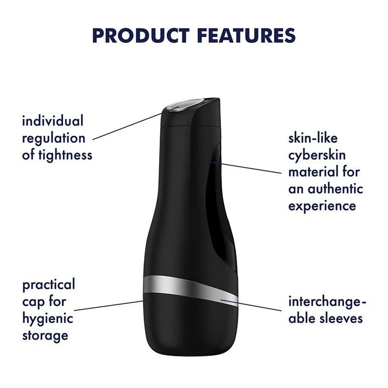 Discover intense pleasure with the Satisfyer Men Classic’s realistic cyberskin sleeve and adjustable suction for a personalized experience.