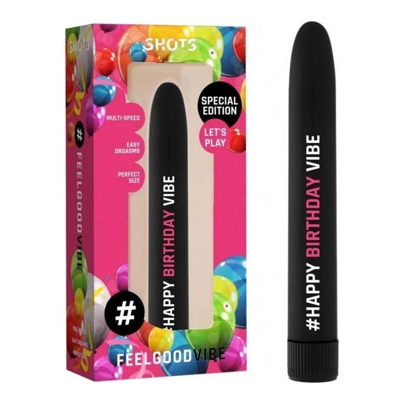 Celebrate anytime with the Shots Toys Feelgood #HappyBirthday Vibrating Bullet! This splashproof vibrator boasts 15,000 RPM, multi-speed adjustment, and a compact design for portable pleasure wherever you go.