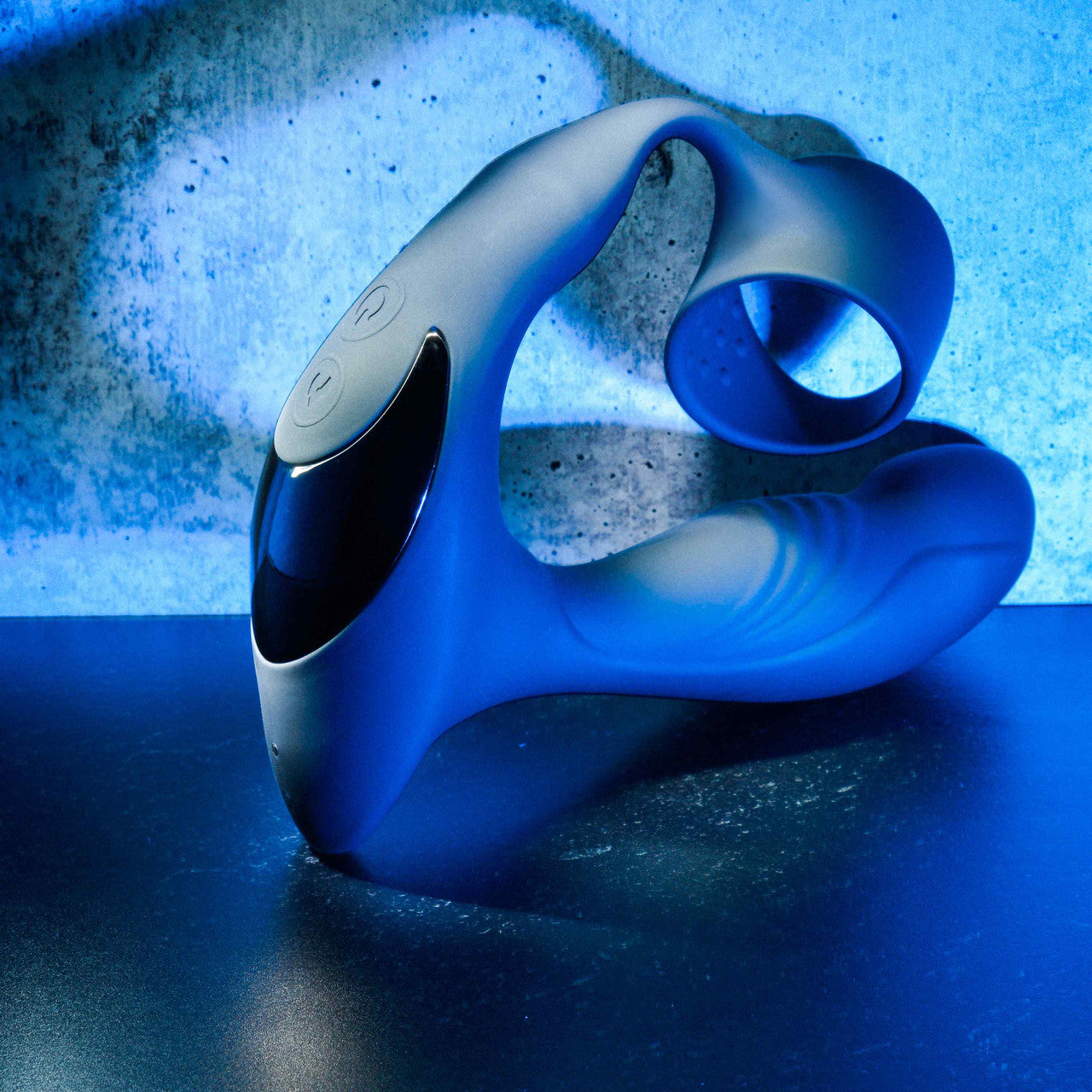 Experience simultaneous pleasure with Zero Tolerance Strapped & Tapped Prostate Vibrator. Its flexible silicone shaft and textured ring deliver powerful, heated vibrations for an extraordinary combination of prostate and penis stimulation.
